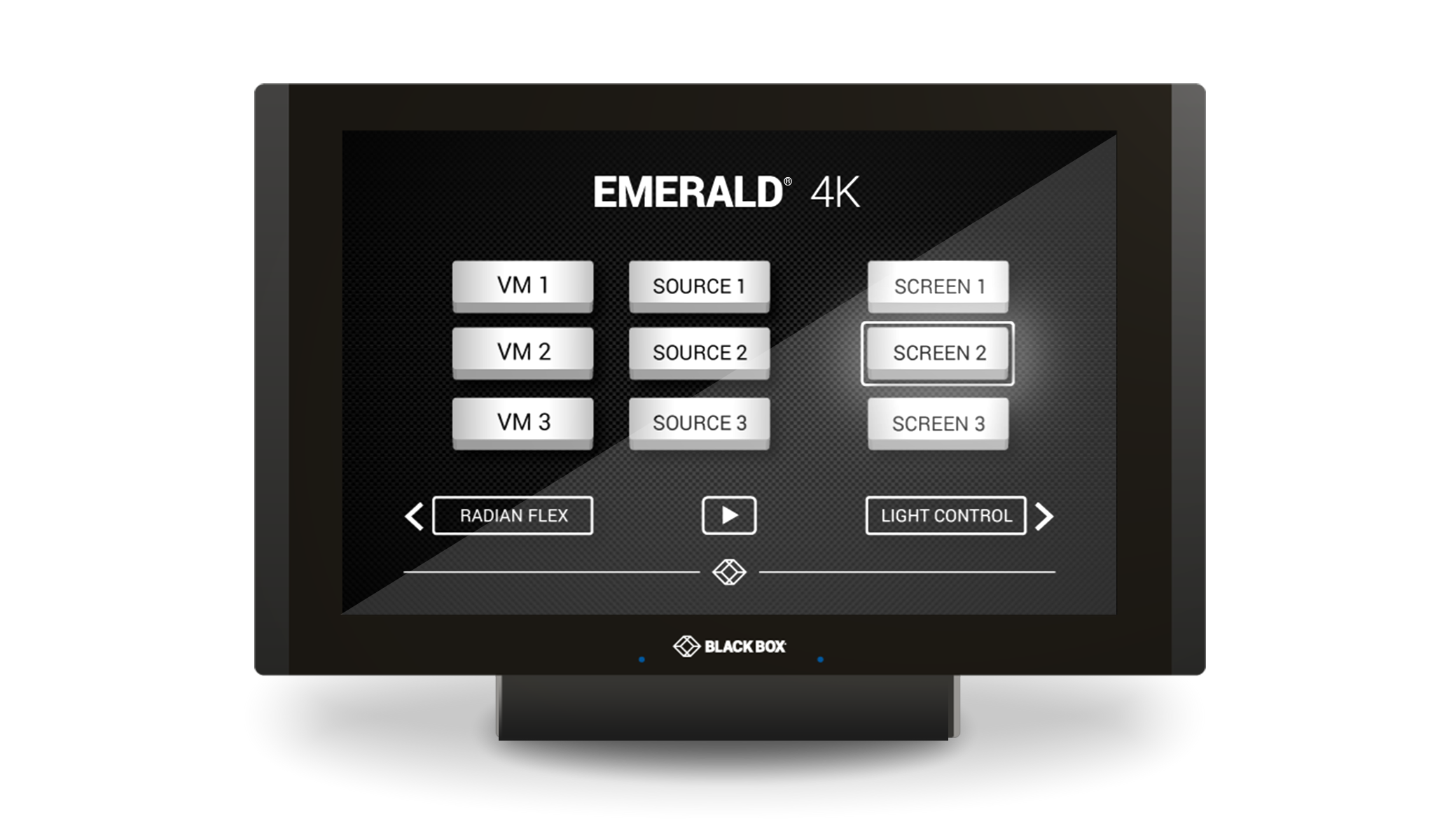 The programmable ControlBridge® touch panel from Black Box allows even complex control room configurations to be executed instantly with a single touch.